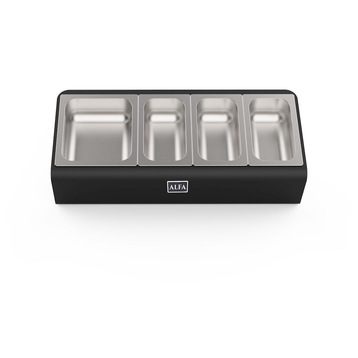 Σταθμός topping Alfa Forni με 4 δοχεία (3 GN 1/9 – 1 GN 1/6) είναι ένα απαραίτητο αξεσουάρ για την