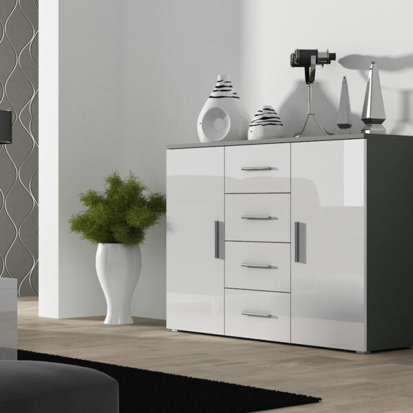 Συρταριέρα Κρεβατοκάμαρας Ξύλινη Uni Sz/bi με 4 συρτάρια grey/white gloss 132x38x92εκ.