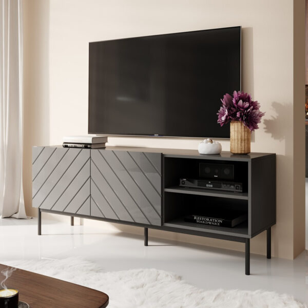 Έπιπλο Τηλεόρασης Ξύλινο Abeto Rtv Graphite/glossy Graphite Μ150xΠ42xΥ60cm STVCMMZPM0212