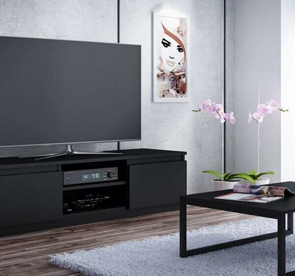 Ξύλινο Pafos Rtv με Φωτισμό LED Matte Black 150x40x60εκ. STVCMMZPM0226