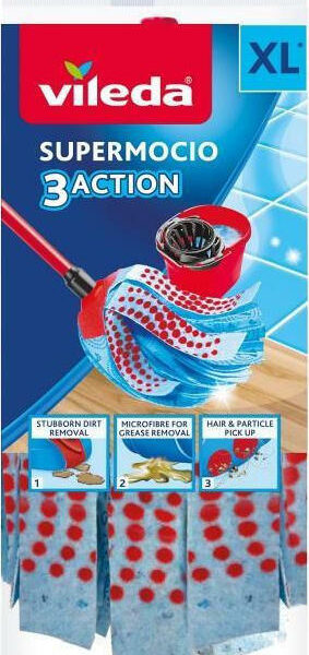 Ένθετο σφουγγαρίστρας SuperMocio 3Action Velor “Κλασικό και μοντέρνο”. Το 16% της επιφάνειας καλύπτεται με βελούδο στις εξωτερικές ρίγες. Κόκκινο λειαντικό