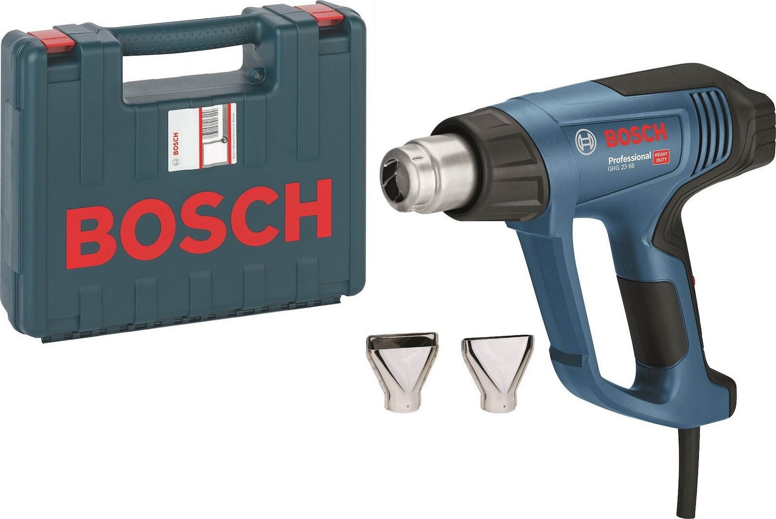 Πιστόλι ζεστού αέρα BOSCH GHG 23-66 2300 W. Τύπος βύσματος: Βύσμα ΕΕ Ικανότητα: 2300 W Περιλαμβάνει: Χαρτοφύλακας Εναλλάξιμα ακροφύσια θέσεις: