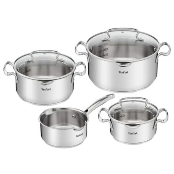 Tefal Duetto+ Σετ Κατσαρόλες από Ανοξείδωτο Ατσάλι Ασημί 7τμχ