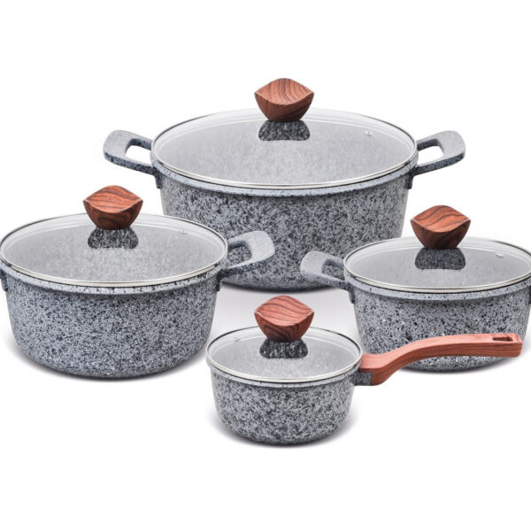 Promis Σετ Κατσαρόλες από Αλουμίνιο Γκρι με Επίστρωση από Πέτρα 8τμχ