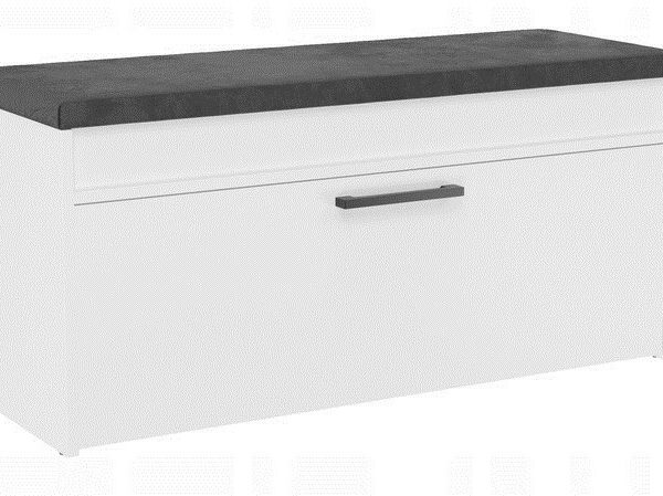 Ντουλάπα παπουτσιών με κάθισμα και αποθηκευτικό χώρο για αίθουσα, χρώμα “PARMA MINI” – Λευκό. Ένα άνετο ντουλάπι παπουτσιών με επενδυμένο