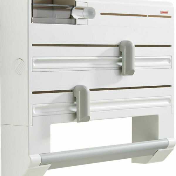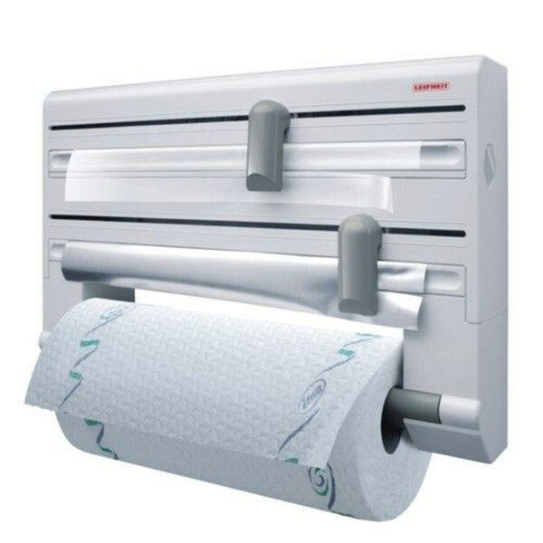 Οι κοφτερές λεπίδες είναι κρυμμένες με ασφάλεια πίσω από τις εργονομικά σχεδιασμένες χειρολαβές κοπής. Η βάση τοίχου ρολών παρέχει χώρο
