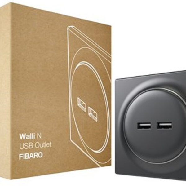 Fibaro Walli N Χωνευτή Πρίζα Ρεύματος με 2 Θύρες USB Μαύρη