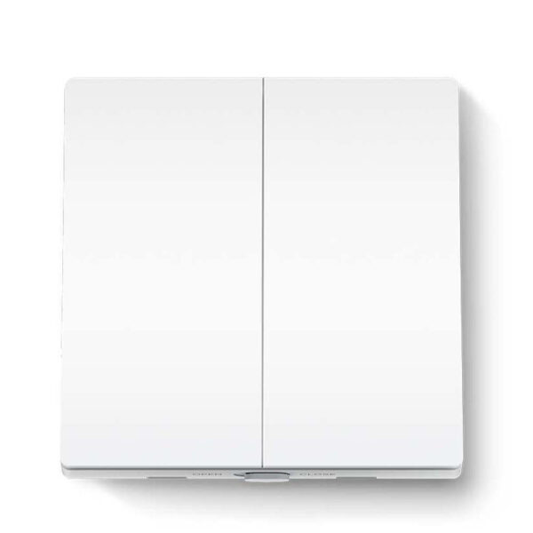 Διπλός χωνευτός διακόπτης τοίχου της TP-LINK, απλός, σε λευκό χρώμα. Περιλαμβάνει τον μηχανισμό και τη μετώπη του διακόπτη, χωρίς πλαίσιο.
