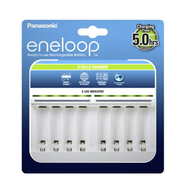 Panasonic Eneloop 8 Slots BQ-CC63 Φορτιστής 8 Μπαταριών Ni-MH Μεγέθους AA/AAA σε Λευκό χρώμα (EKO PACK)