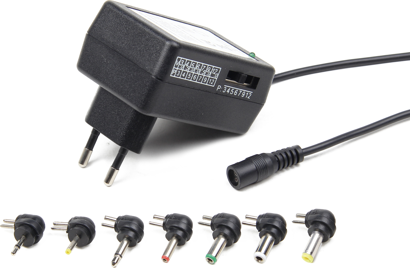 Universal AC τροφοδοτικό μετασχηματιστή ρεύματος με χειροκίνητη επιλογή τάσης. Διαστάσεις σετ βυσμάτων: 3.5×1.35×10 mm 5.0×2.1×10 mm 5.5×2.5×10 mm 2.35×0.75×10 mm