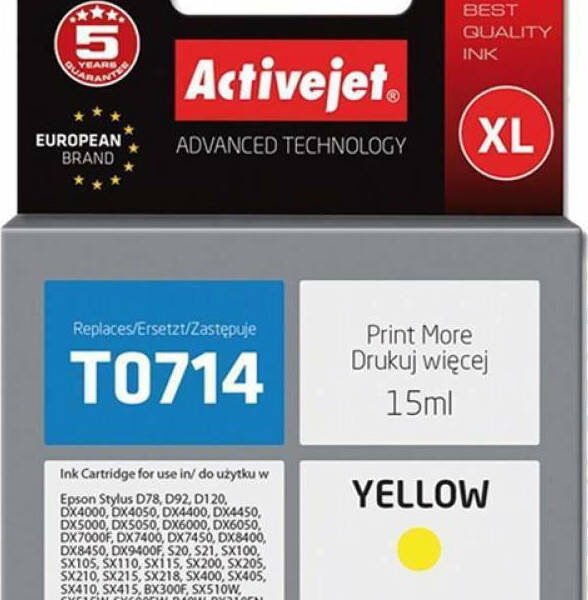 Active Jet Συμβατό Μελάνι Εκτυπωτή InkJet Epson T0714 15ml Κίτρινο