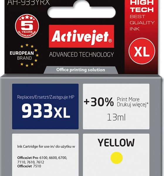 Active Jet Συμβατό Μελάνι Εκτυπωτή InkJet HP 933XL CN056AE 13ml Κίτρινο