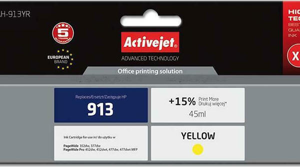 Active Jet Συμβατό Μελάνι Εκτυπωτή InkJet HP 913 F6T79AE 3450 Σελίδων 45ml Κίτρινο