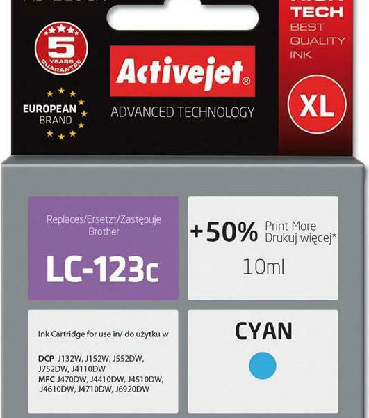 Active Jet Συμβατό Μελάνι Εκτυπωτή InkJet Brother LC-123C/LC-121C 10ml Κυανό