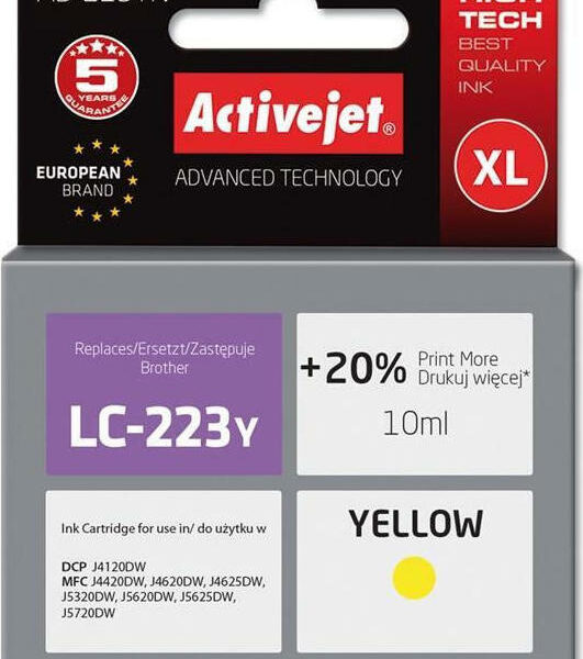 Active Jet Συμβατό Μελάνι Εκτυπωτή InkJet Brother LC-223Y 10ml Κίτρινο
