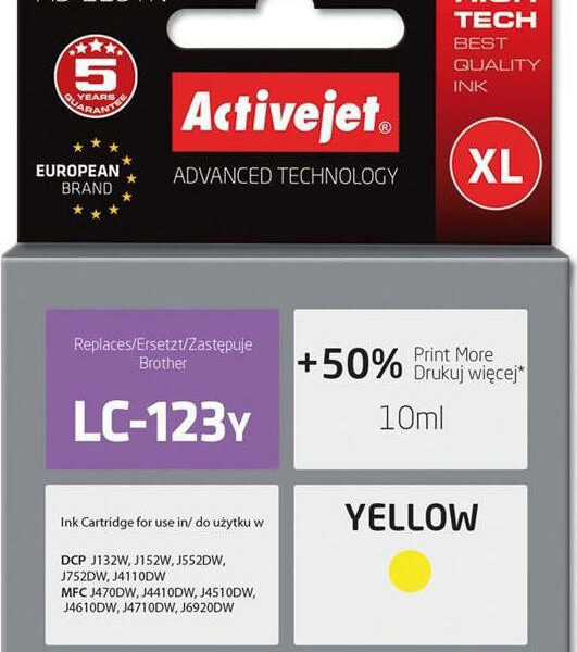 Active Jet Συμβατό Μελάνι Εκτυπωτή InkJet Brother LC-123Y 10ml Κίτρινο