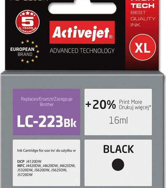 Active Jet Συμβατό Μελάνι Εκτυπωτή InkJet Brother LC-223BK 16ml Μαύρο