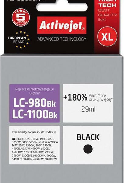 Active Jet Συμβατό Μελάνι Εκτυπωτή InkJet Brother LC-980BKLC-1100BK 29ml Μαύρο