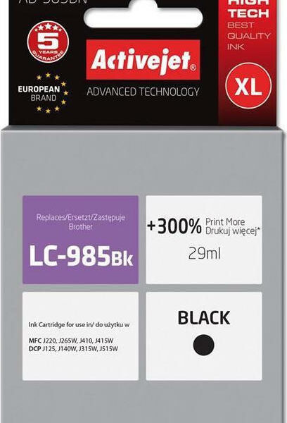 Active Jet Συμβατό Μελάνι Εκτυπωτή InkJet Brother LC-985BK 29ml Μαύρο