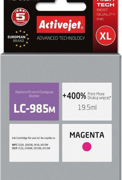 Active Jet Συμβατό Μελάνι Εκτυπωτή InkJet Brother LC-985M 19.5ml Ματζέντα