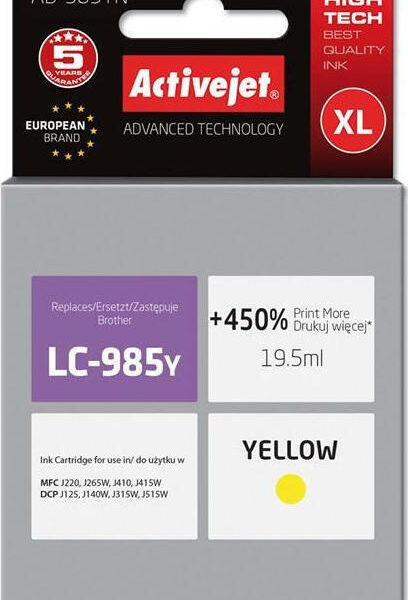 Active Jet Συμβατό Μελάνι Εκτυπωτή InkJet Brother LC-985Y 19.5ml Κίτρινο