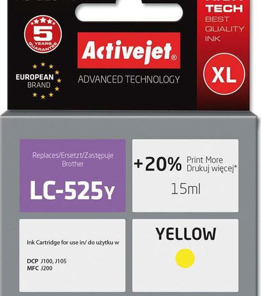 Active Jet Συμβατό Μελάνι Εκτυπωτή InkJet Brother LC-525Y 15ml Κίτρινο