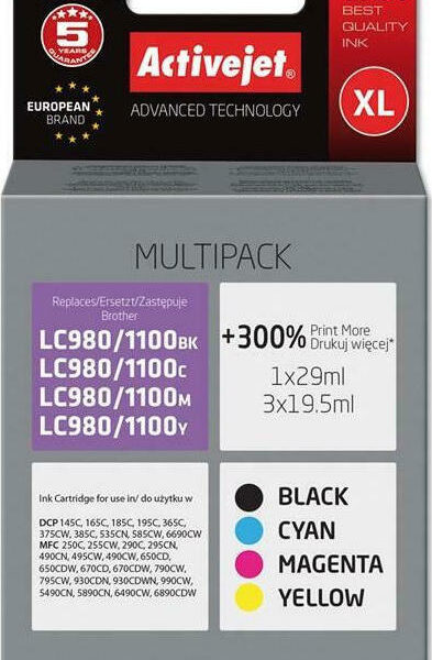 Active Jet Συμβατό Μελάνι Εκτυπωτή InkJet Brother LC980BK/C/M/Y LC1100BK/C/M/Y Πολλαπλό (Color) / Μαύρο