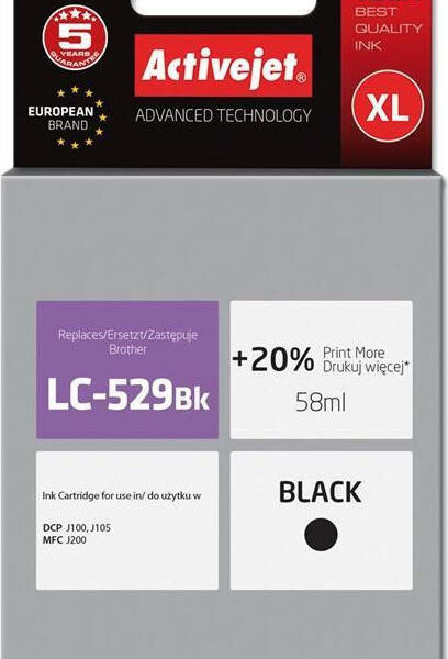 Active Jet Συμβατό Μελάνι Εκτυπωτή InkJet Brother LC-529BK 58ml Μαύρο