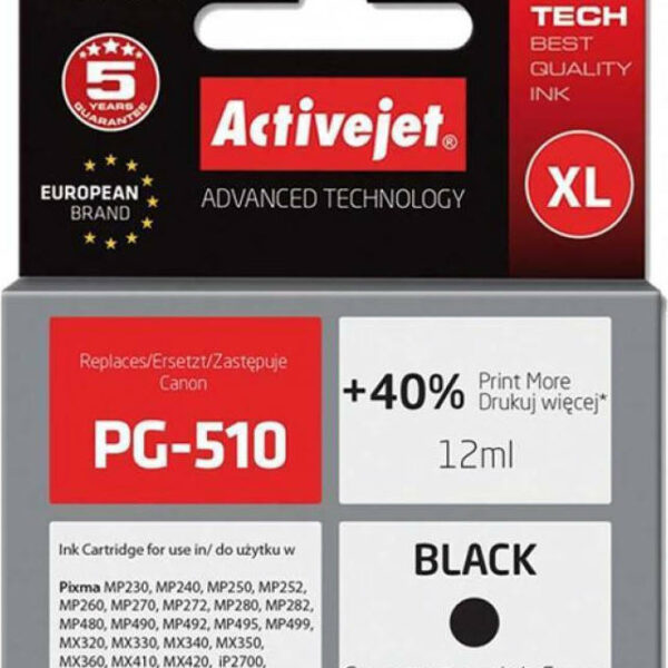 Active Jet Συμβατό Μελάνι Εκτυπωτή InkJet Canon PG-510 12ml Μαύρο