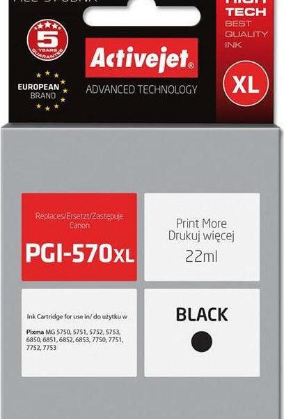 Active Jet Συμβατό Μελάνι Εκτυπωτή InkJet Canon PGI-570Bk 22ml Μαύρο