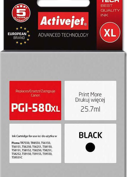 Active Jet Συμβατό Μελάνι Εκτυπωτή InkJet Canon PGI-580XL 25.7ml Μαύρο