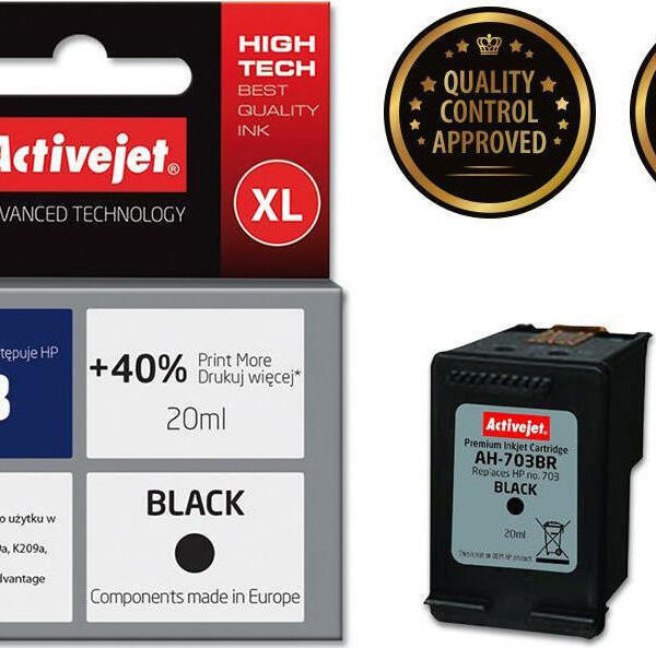 Active Jet Συμβατό Μελάνι Εκτυπωτή InkJet HP 703 CD887AE 840 Σελίδων 20ml Μαύρο