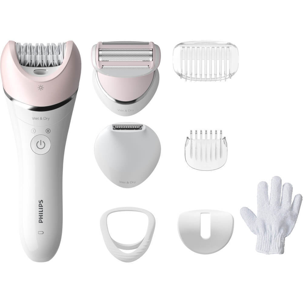 Σετ αποτρίχωσης epilator της εταιρείας Panasonic, κατάλληλο για χρήση στο σώμα. Περιλαμβάνει μηχανή με ειδικές περιστρεφόμενες ηλεκτρικές τσιμπίδες μεγάλης ταχύτητας,