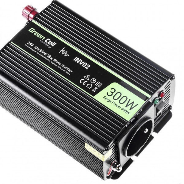 Green Cell Inverter Αυτοκινήτου Καθαρού Ημιτόνου 300W για Μετατροπή 24V DC σε 230V AC με 1xUSB