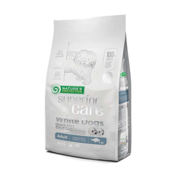 Nature’s Protection Superior Care White Dogs Adult 1.5kg Ξηρά Τροφή χωρίς Σιτηρά & Γλουτένη για Ενήλικους Σκύλους Μικρόσωμων Φυλών με Πατάτες, Πουλερικά, Σολομό και Ψάρια