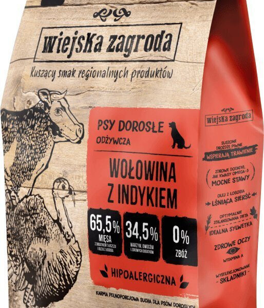 Wiejska Zagroda 2kg Ξηρά Τροφή Σκύλων με Βοδινό και Γαλοπούλα
