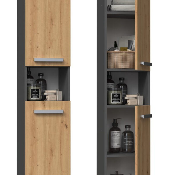 Ντουλάπι Μπάνιου NEL II σε χρώμα Anthracite Oak Artisan. Κάθε μπάνιο χρειάζεται αποθηκευτικούς χώρους για να διατηρεί την τάξη. Ο