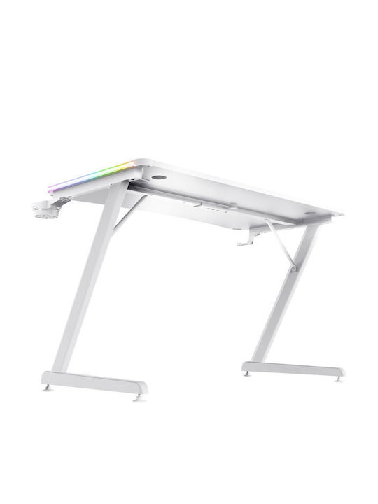 Γραφείο Gaming GXT 709W Luminus Ξύλινο White με LED & USB θύρες 120x60x74εκ. 25328