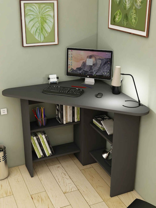 Γωνιακό Γραφείο Ράφι Αποθήκευσης Ανθρακί80x80x73.8cm