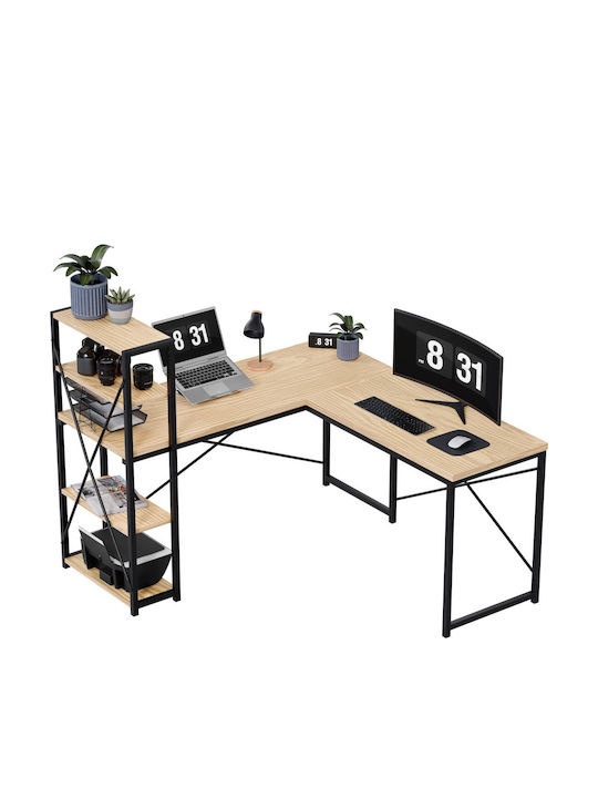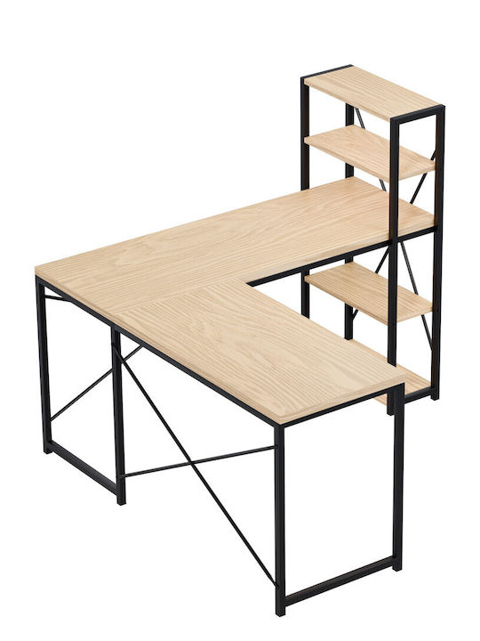 - Ειδικά χαρακτηριστικά: Γωνιακό γραφείο με ράφια που μπορούν να τοποθετηθούν δεξιά ή αριστερά, ρυθμιζόμενα πόδια και εύκολη συναρμολόγηση.