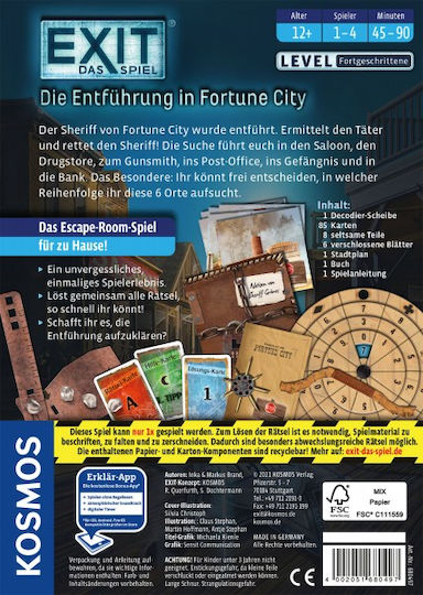 Επιτραπέζιο Παιχνίδι EXIT Die Entführung in Fortune City για 1-4 Παίκτες 12+ Ετών 680497 (GER) Kosmos