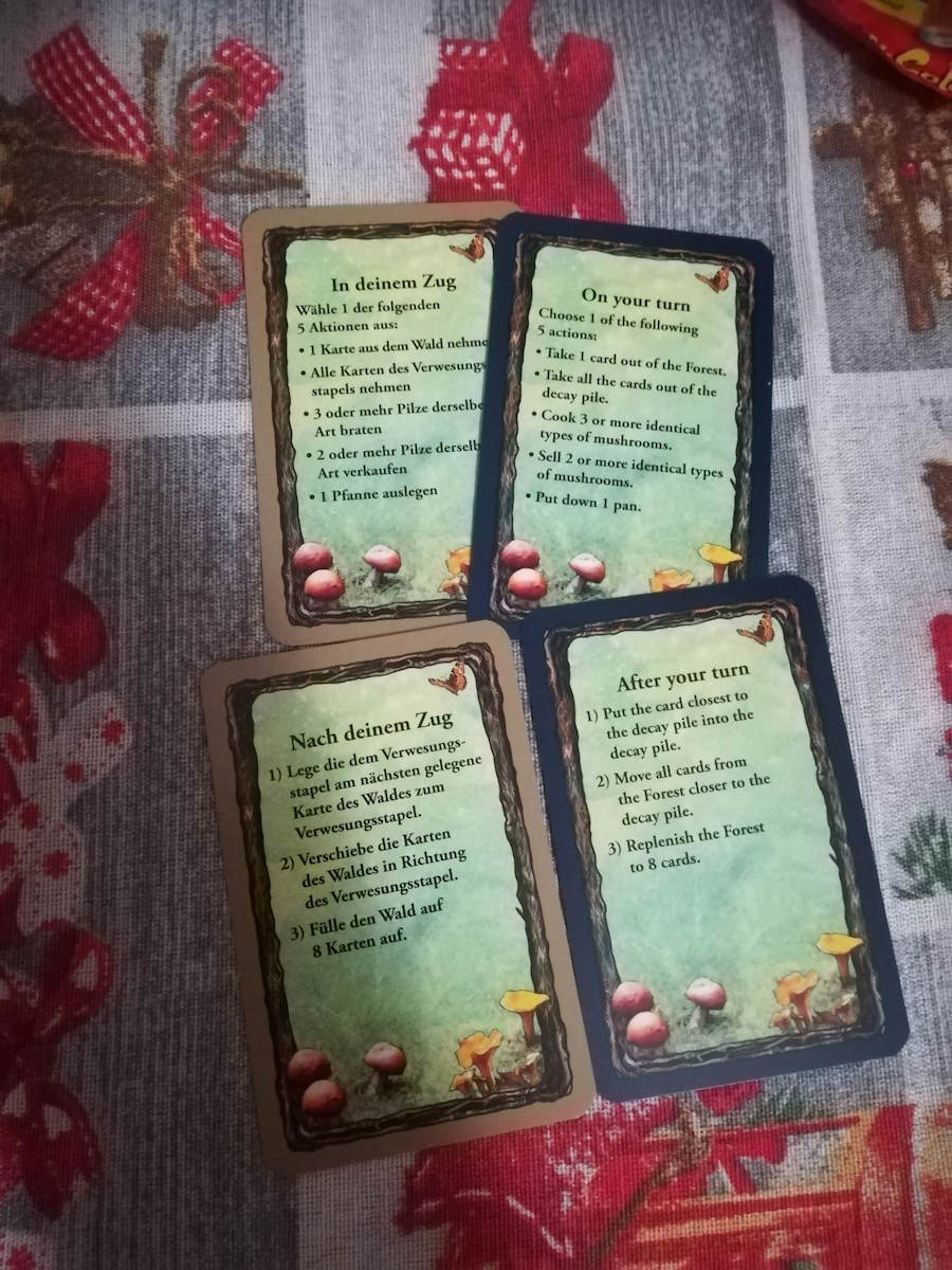 Αν νομίζετε ότι είναι η τυχερή σας μέρα, φέρτε ένα καλάθι. Εάν πεινάτε, βάλτε ένα τηγάνι στη φωτιά και απολαύστε το άρωμα των μανιταριών. Σε αυτό το παιχνίδι για δύο παίκτες, χρησιμοποιείτε δύο τράπουλες. Την τράπουλα “ημέρας” η οποία περιλαμβάνει διάφορα είδη μανιταριών, καλάθια, βούτυρο, τηγάνια κλπ και την τράπουλα “νύχτας” για τα μανιτάρια τα οποία πρέπει να μαζευτούν τη νύχτα. Μαζέψτε μανιτάρια, μαγειρέψτε τα ή πουλήστε τα και προσπαθείστε να μαζέψετε όσο περισσότερους πόντους μπορείτε.