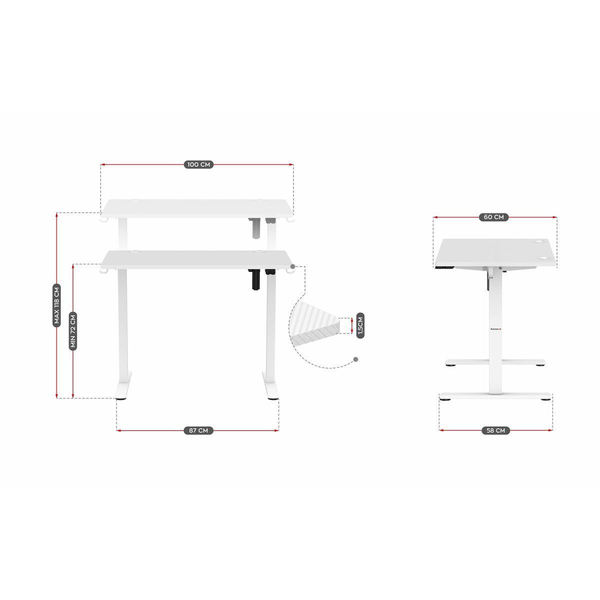 - Πάχος υλικού επιφάνειας γραφείου: 1.5 cm