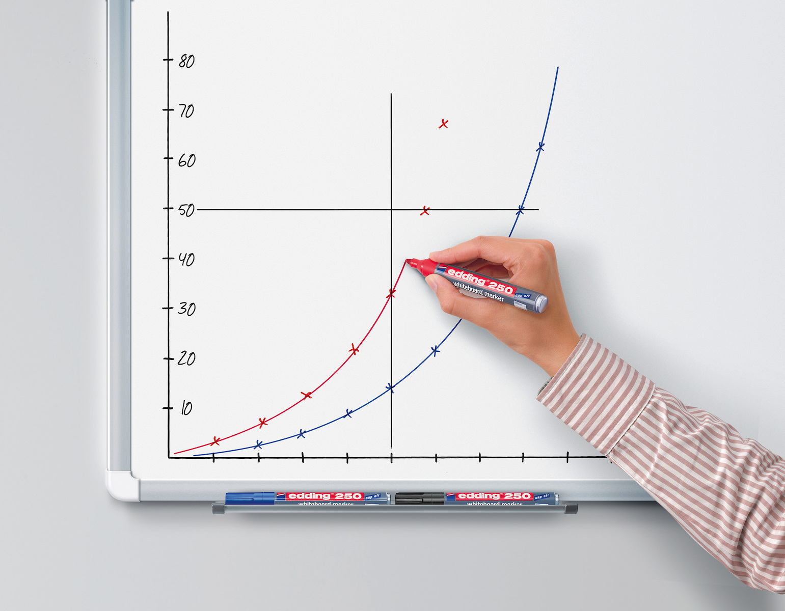 Κατά τον συντονισμό ενός καταιγισμού ιδεών, τη διδασκαλία μιας τάξης ή για σημαντικά μηνύματα στο σπίτι, είναι πρωταρχικής σημασίας να έχετε την υποστήριξη ενός σταθερού εργαλείου. Ο μαρκαδόρος του λευκού πίνακα edding 250 είναι ένα τέτοιο εργαλείο, γιατί δεν θα στεγνώσει, ακόμα κι αν ο μαρκαδόρος μείνει χωρίς το καπάκι για αρκετές ημέρες. Το υψηλής ποιότητας αλουμινένιο βαρέλι του είναι τόσο συμπαγές όσο και τα αποτελέσματά του. Όπως όλοι οι μαρκαδόροι edding whiteboard, ο δείκτης edding 250 whiteboard μπορεί να σκουπιστεί εύκολα χωρίς υπολείμματα.