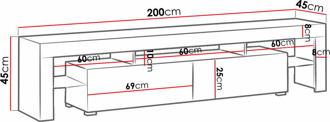 Έπιπλο Τηλεόρασης Ξύλινο Toro Μαύρο Γκρι Μ200xΠ45xΥ45cm 161460159