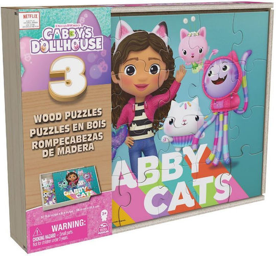 Αν τα παιδιά σας αγαπούν τους ήρωες από το Κουκλόσπιτο της Γκάμπι, αυτό το σετ παζλ θα τους ενθουσιάσει! Περιλαμβάνει τρία ξύλινα παιδικά παζλ: