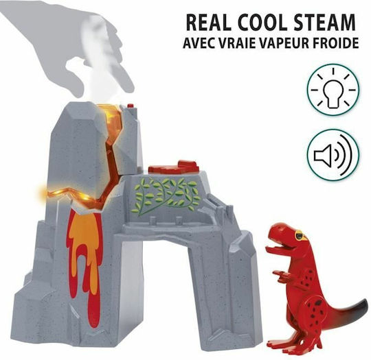 Ξυπνήστε το ηφαίστειο πατώντας το μικρό κουμπί στην κορυφή του για να ενεργοποιήσετε λαμπερά φώτα λάβας, ήχους ηφαιστείου και εφέ ατμού ασφαλούς επαφής που αναδύονται από την οπή του ηφαιστείου.