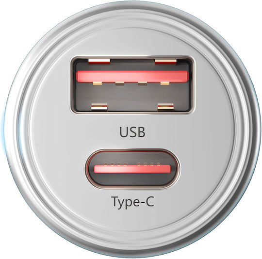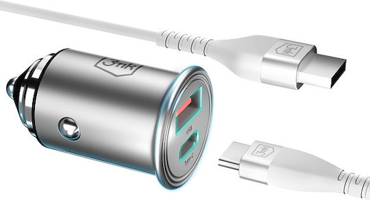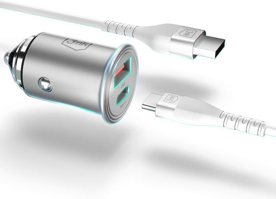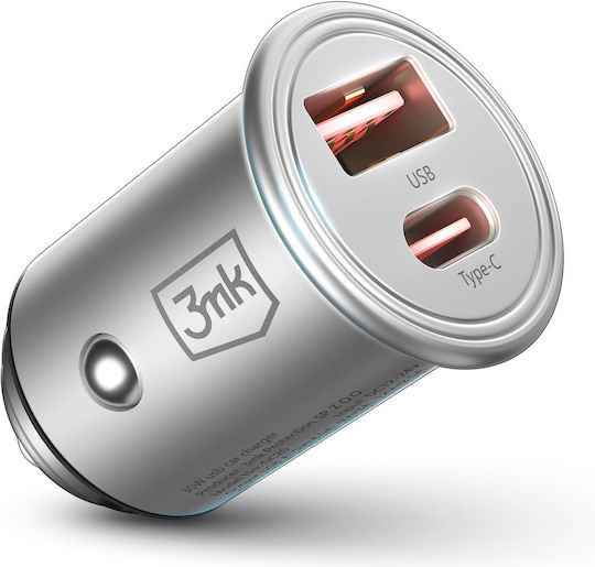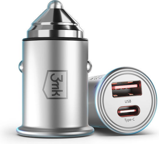 3MK Φορτιστής Αυτοκινήτου HyperCar 30W με Θύρες: 1xUSB 1xType-C Ασημί 3MK3755