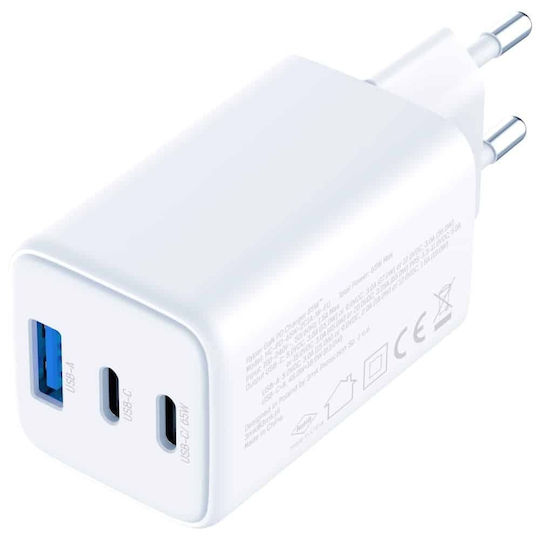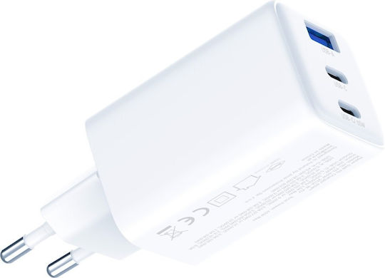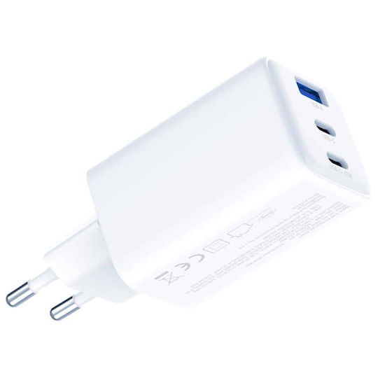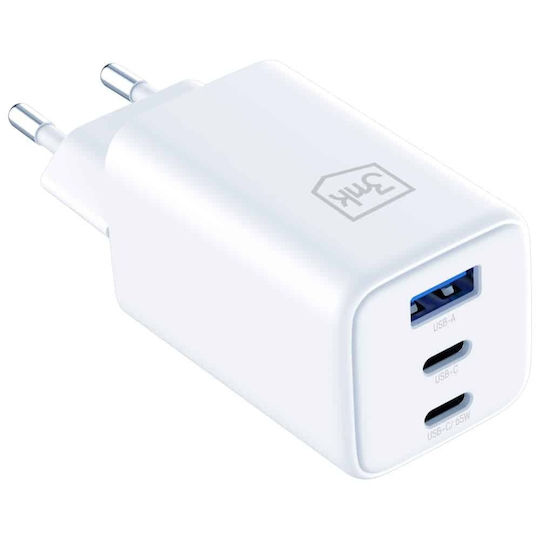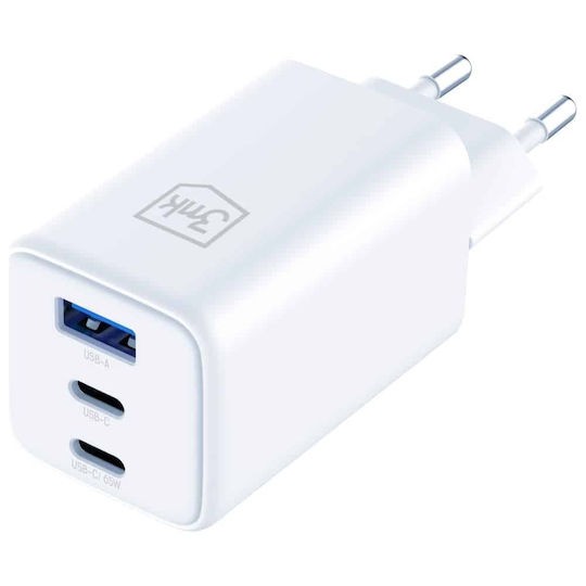 3MK Φορτιστής Χωρίς Καλώδιο GaN με Θύρα USB-A και 2 Θύρες USB-C 65W Power Delivery Λευκός (Hyper)