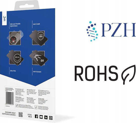 FlexibleGlass Lite – Το λεπτότερο υβριδικό γυαλί της αγοράς. Σχεδόν ανεπαίσθητο με πάχος 0,16 χλστ. Ενισχύει την αντίσταση της οθόνης έως και 200% και διαθέτει εύκολη εγκατάσταση χάρη στα αυτοκόλλητα τοποθέτησης Fit-In.